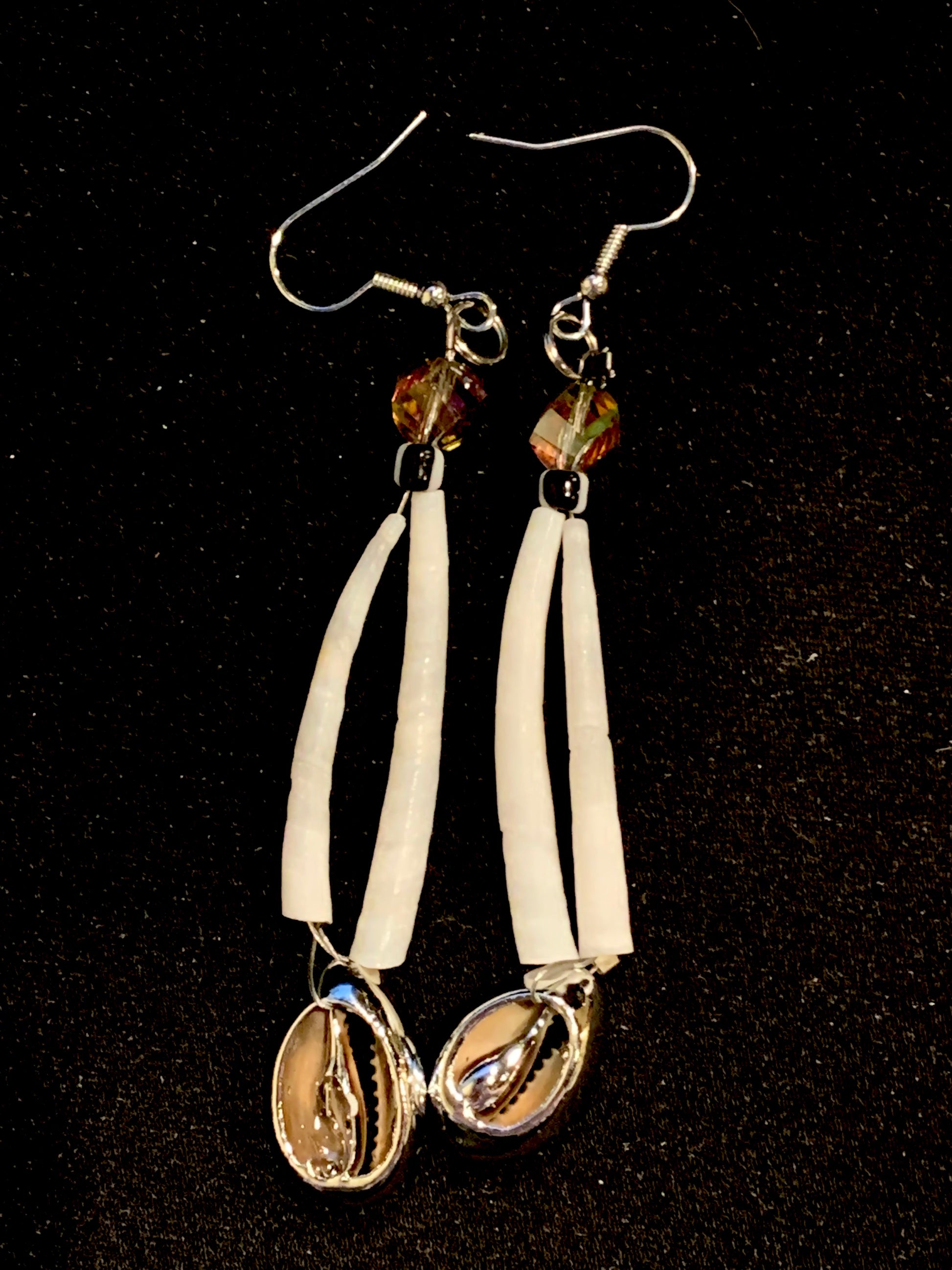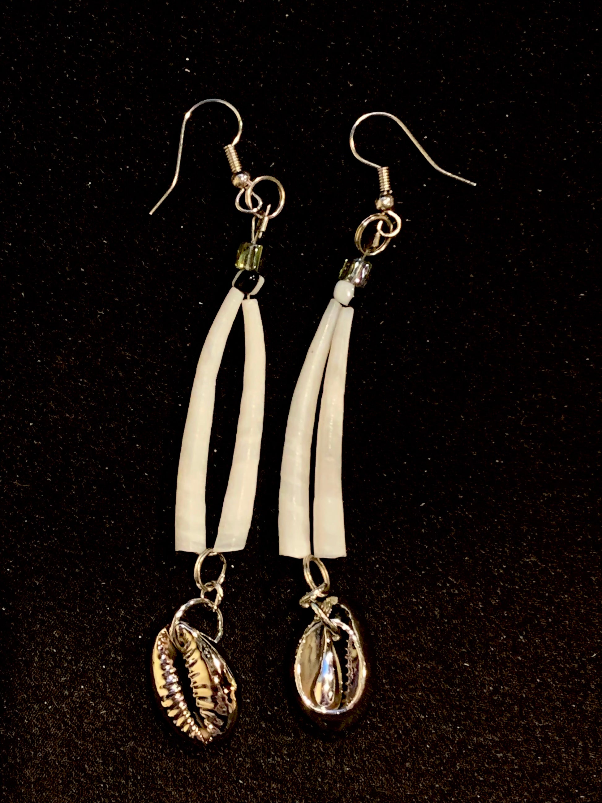 Amaris Makes Good - Two Tiered Dentalium Earrings w Metallic Shells