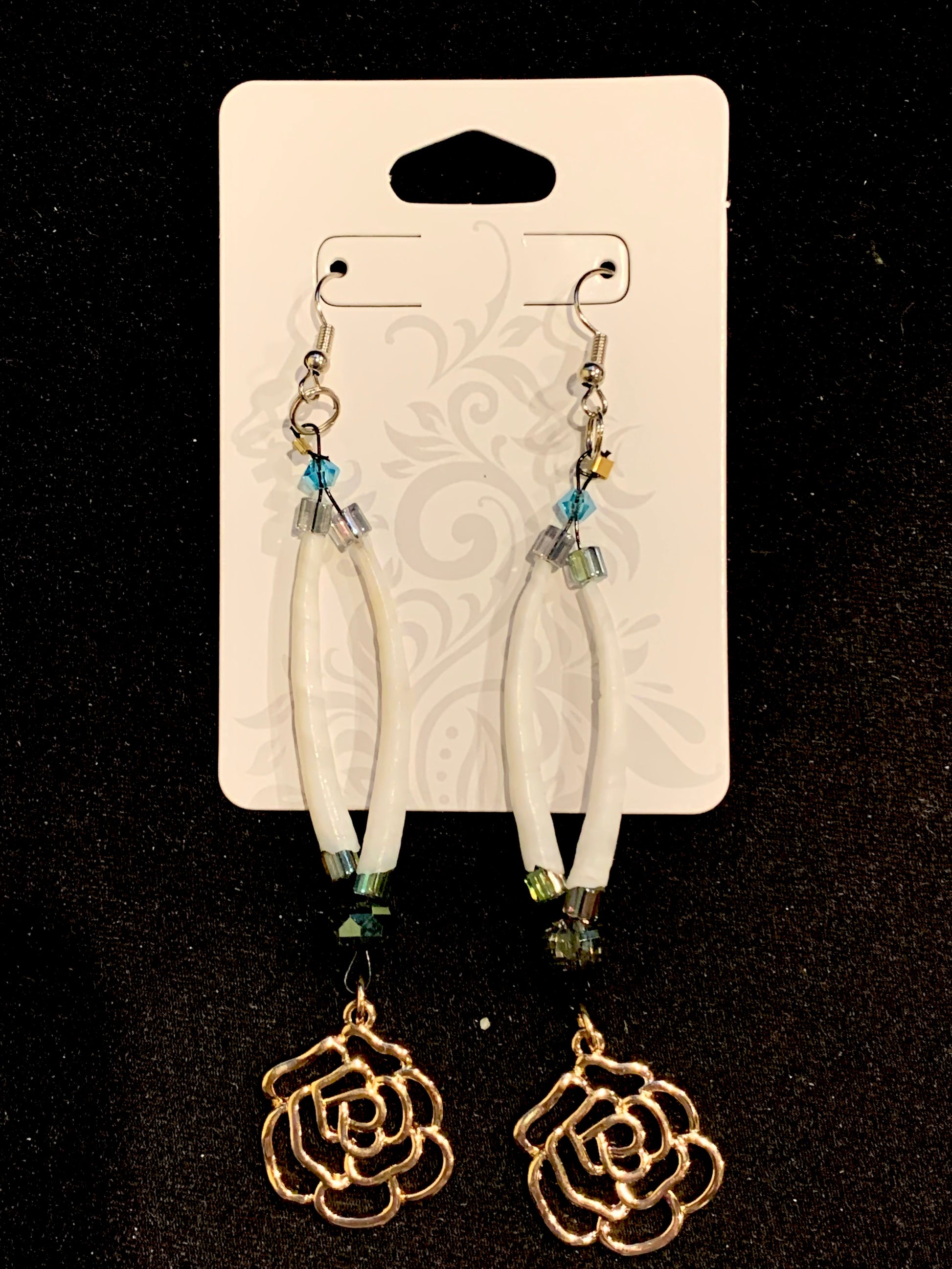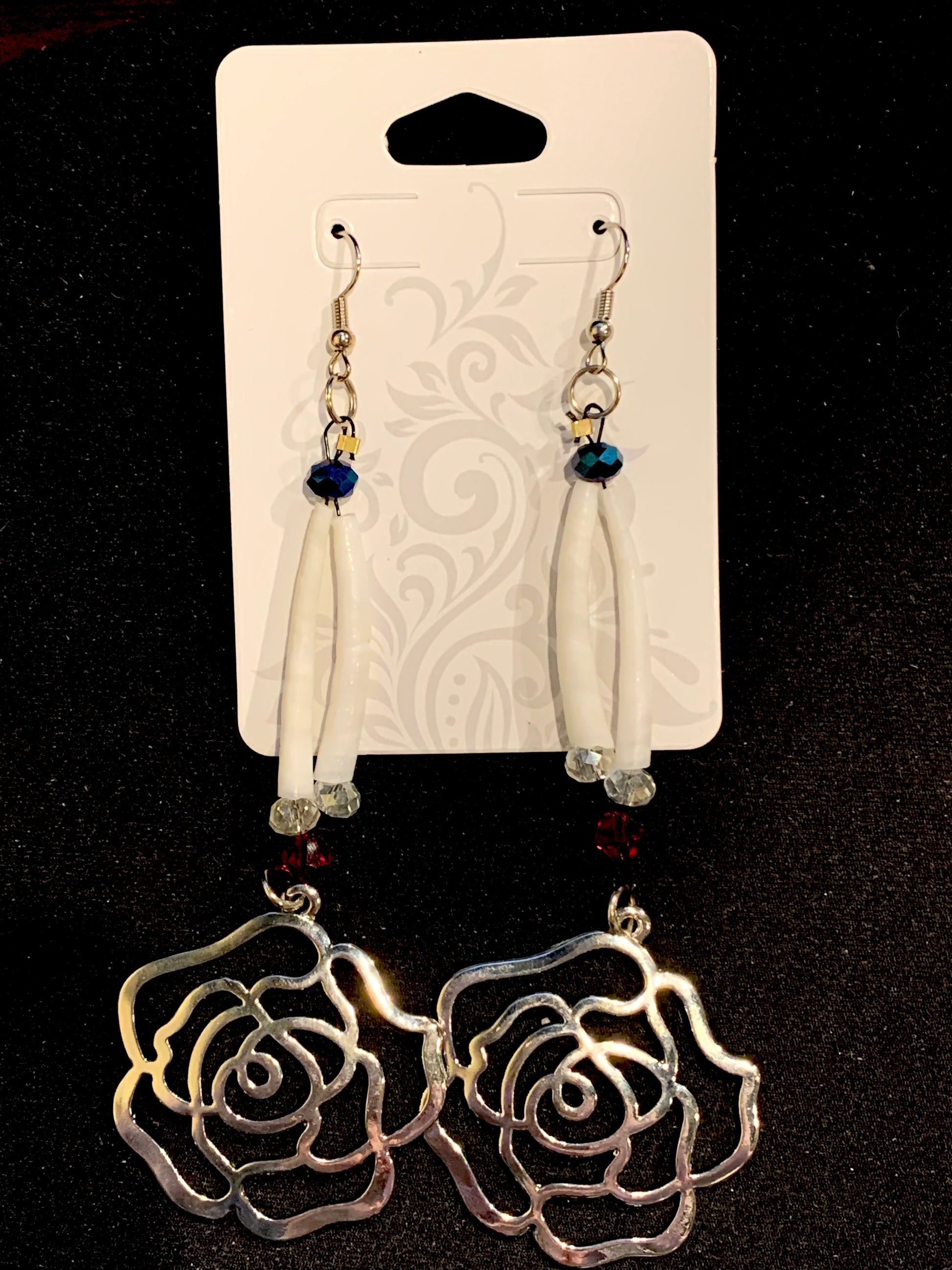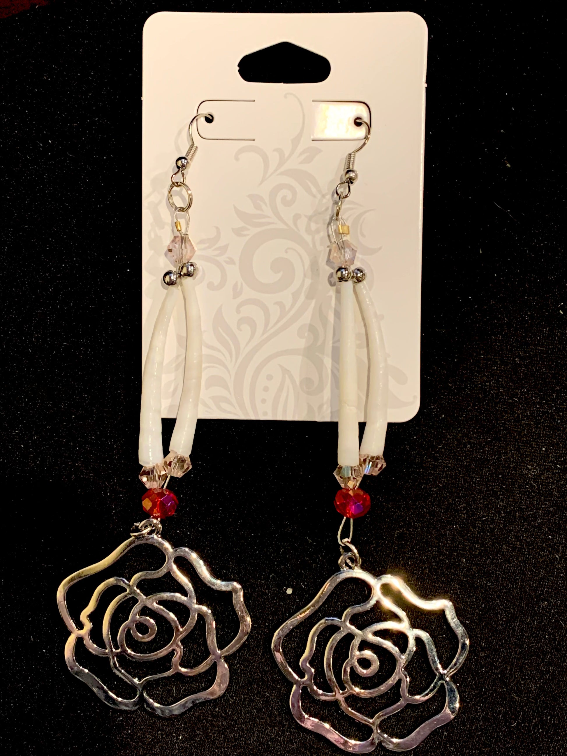 Amaris Makes Good - Two Tiered Dentalium Earrings with Roses