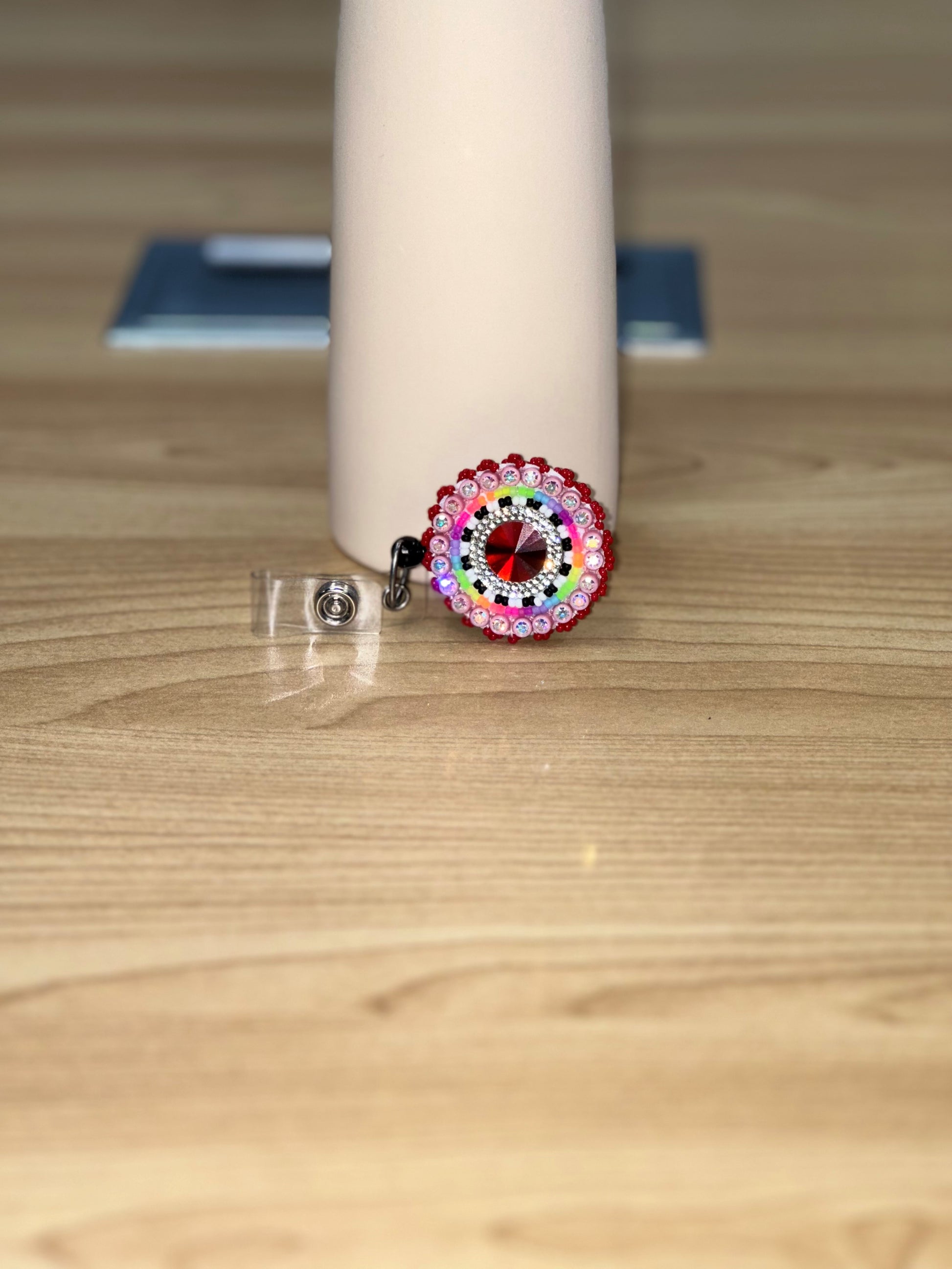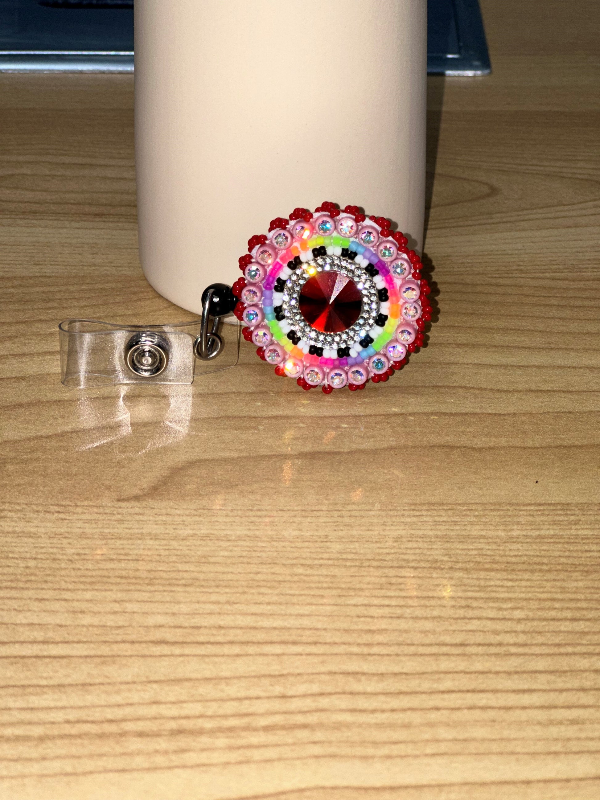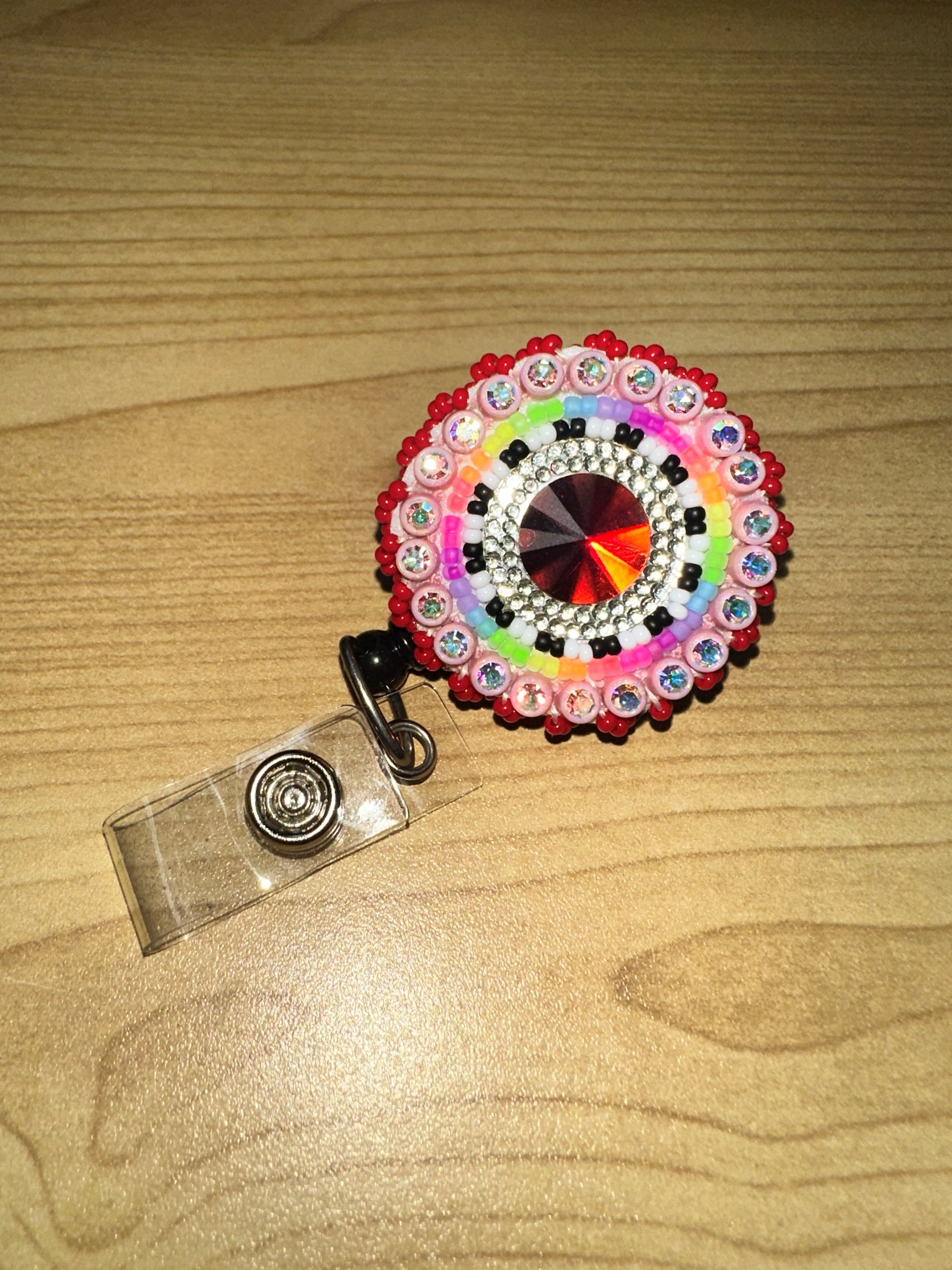 Beaded Badge Holder - Red, Pink, Orange, Green