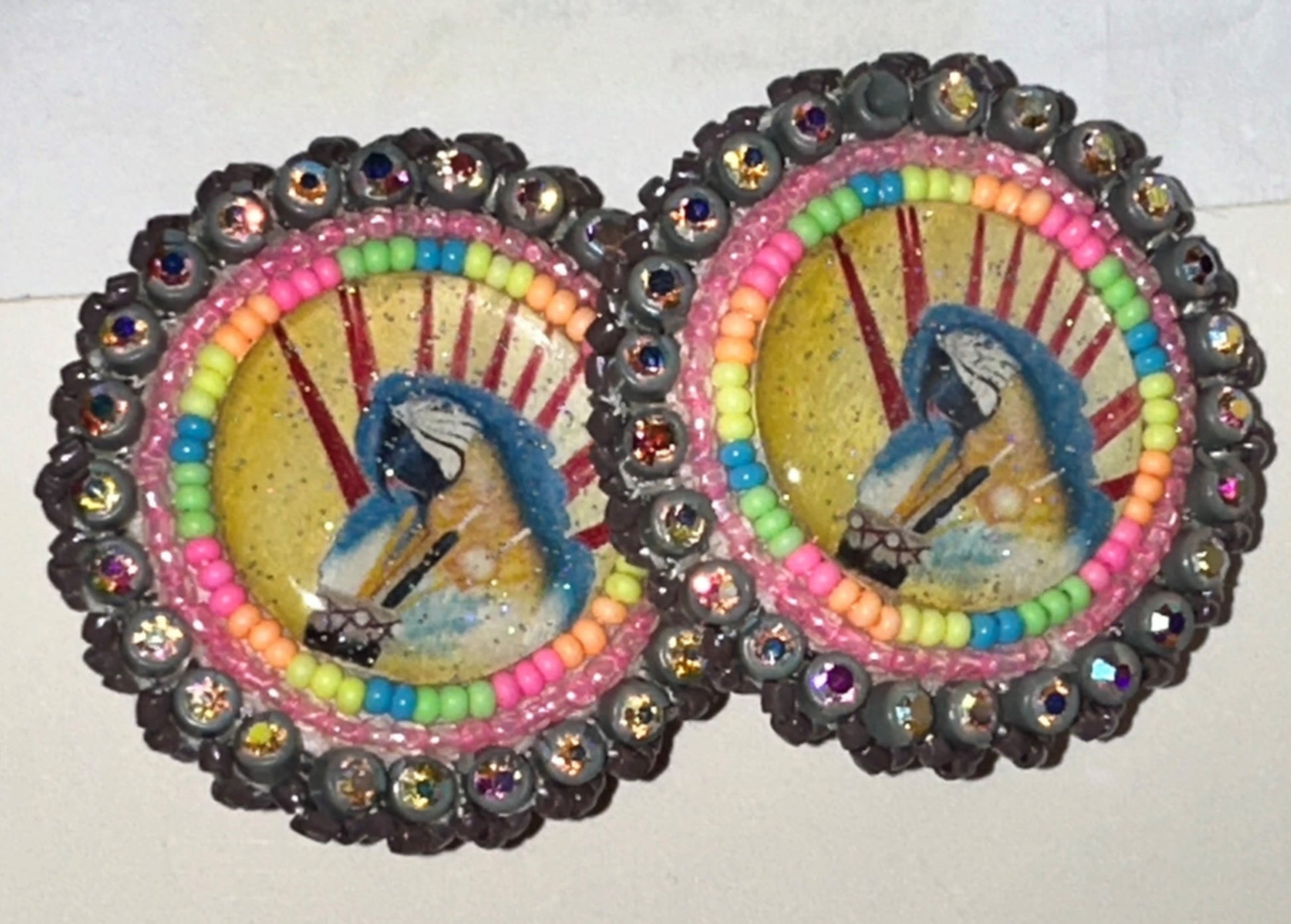 Beaded Earrings - Blue-Gold Macaw - Native American Church