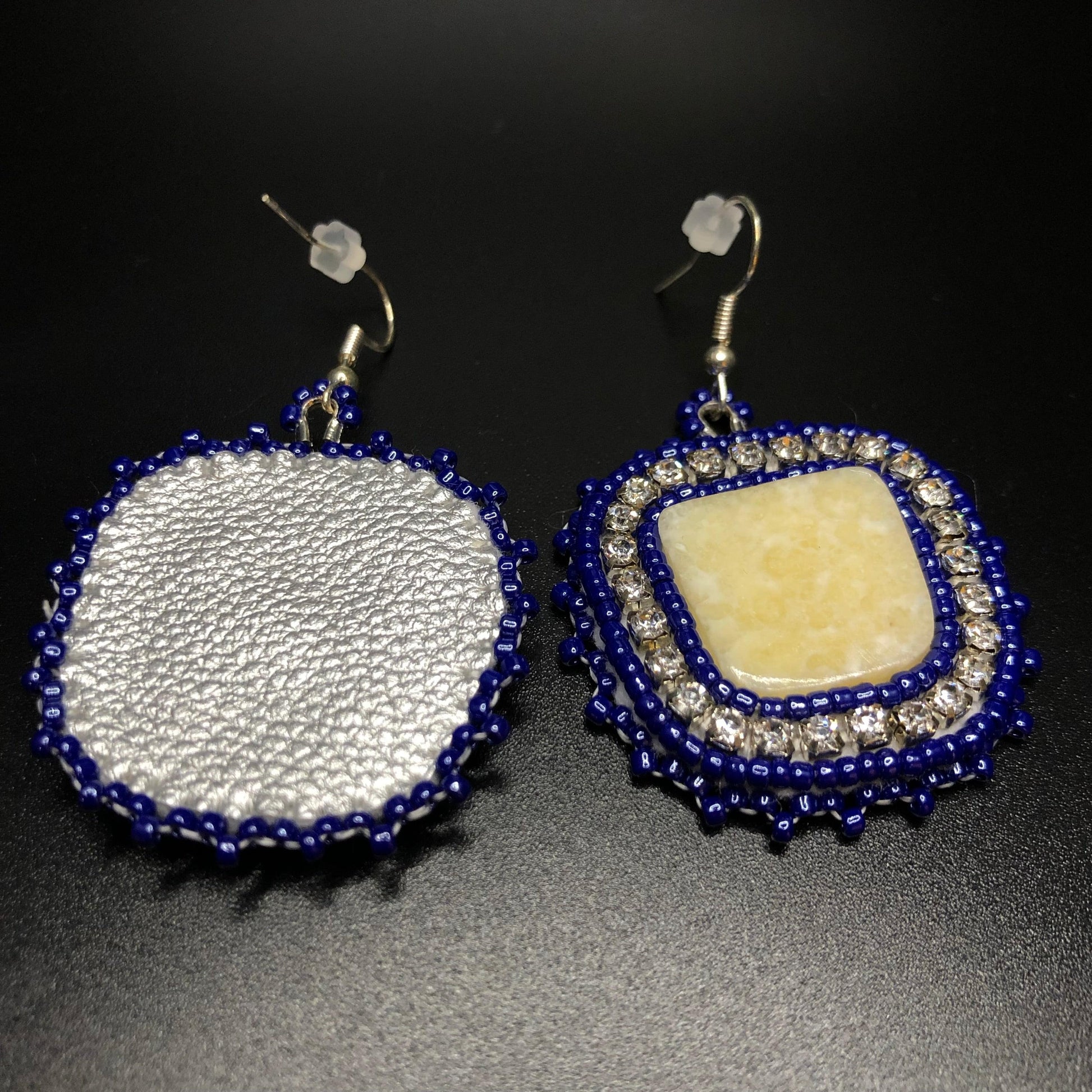 Aeshia Upton - Dark Blue Beaded Earrings, Off Square Ivory Centers