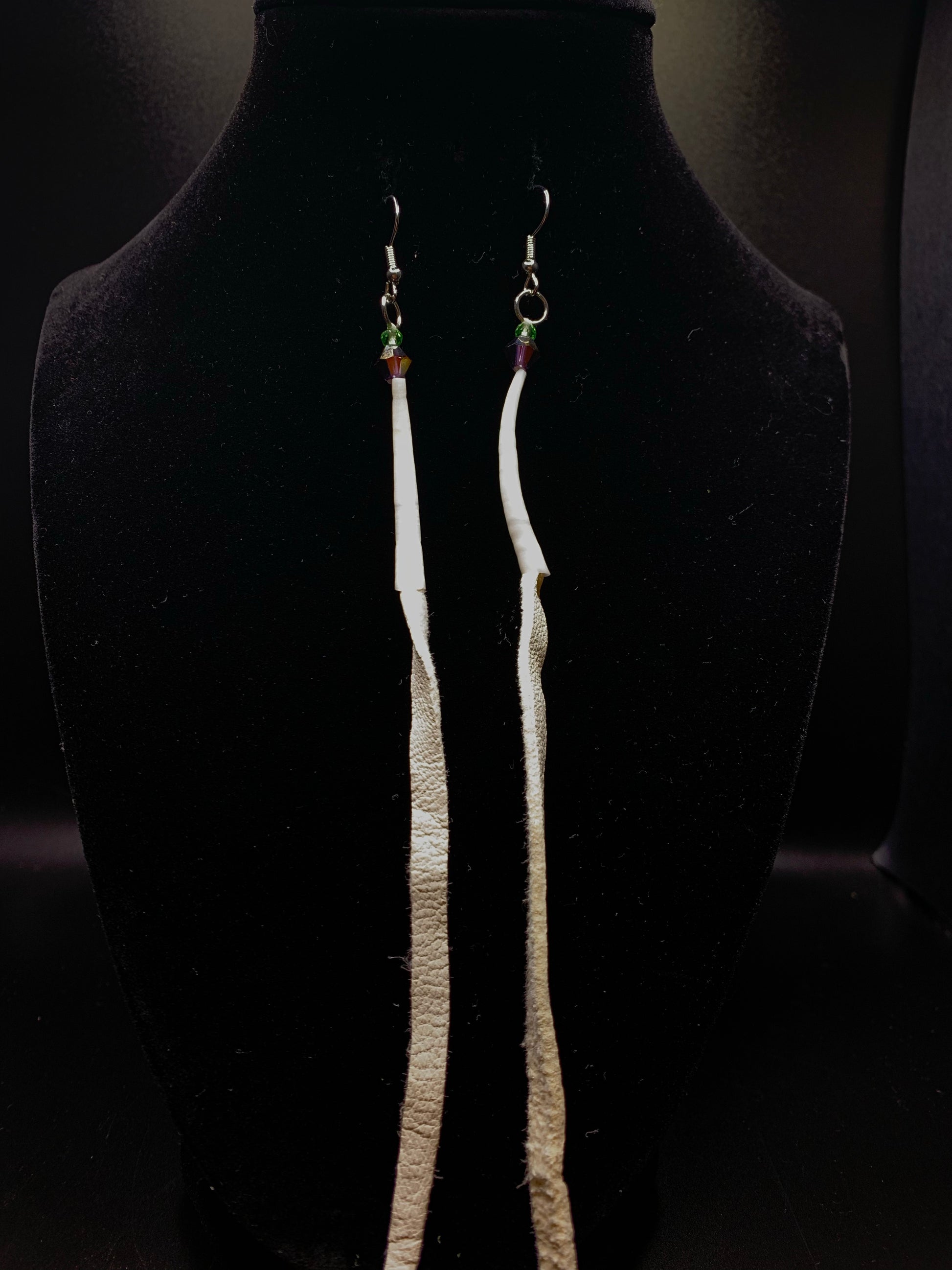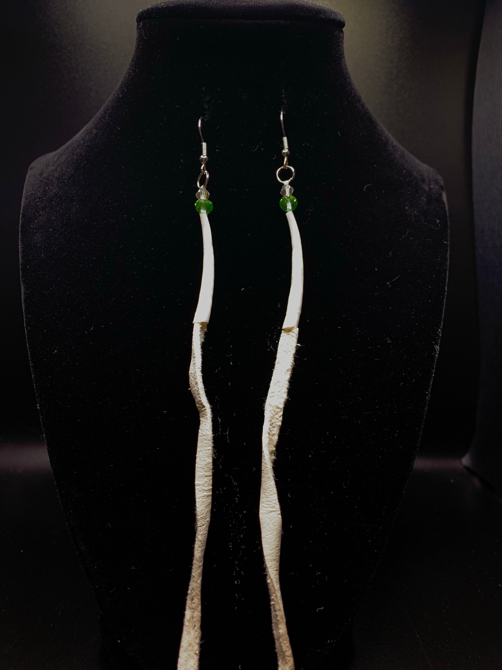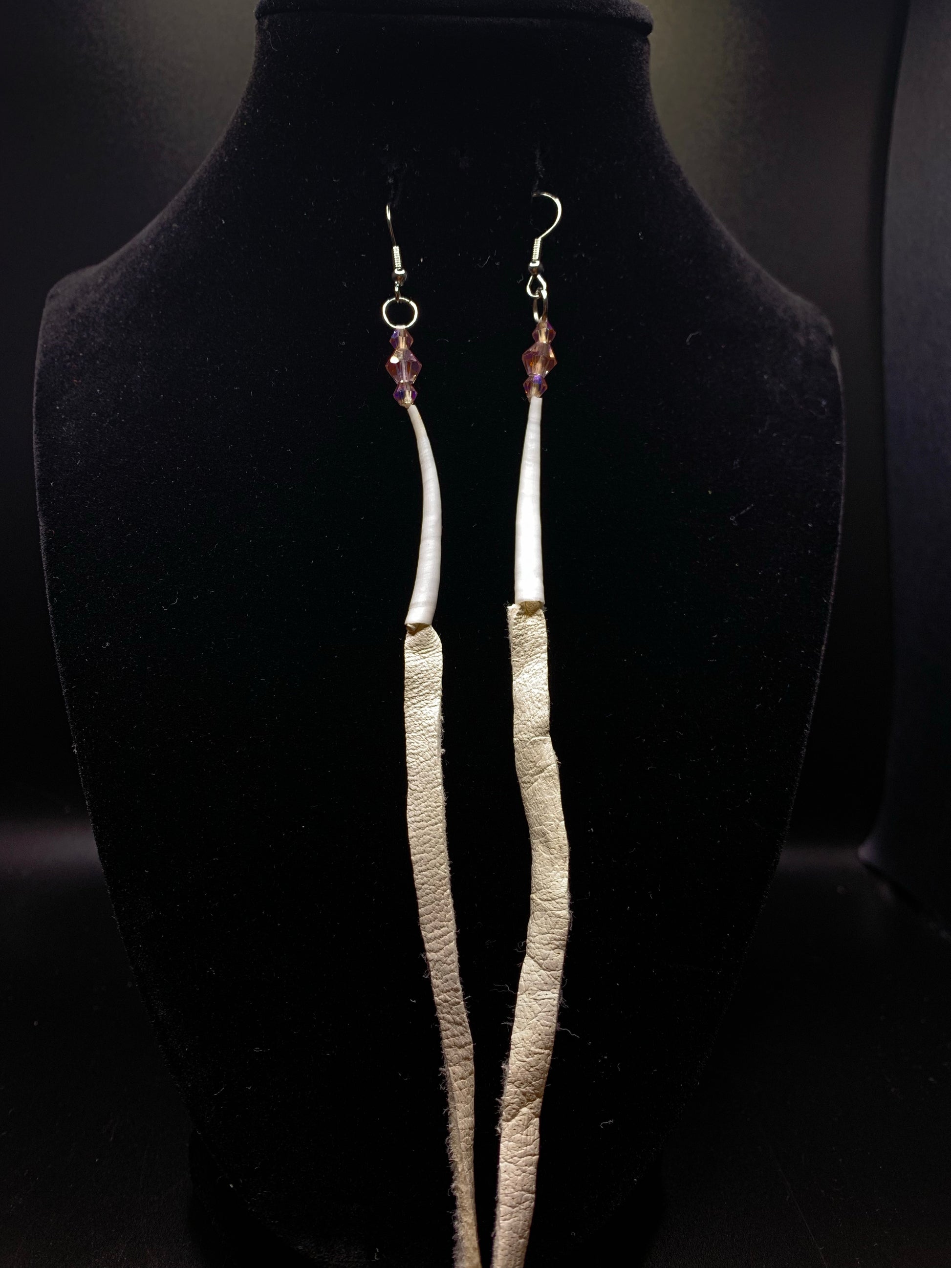Amaris Makes Good - Dentalium Earrings w Leather Fringe