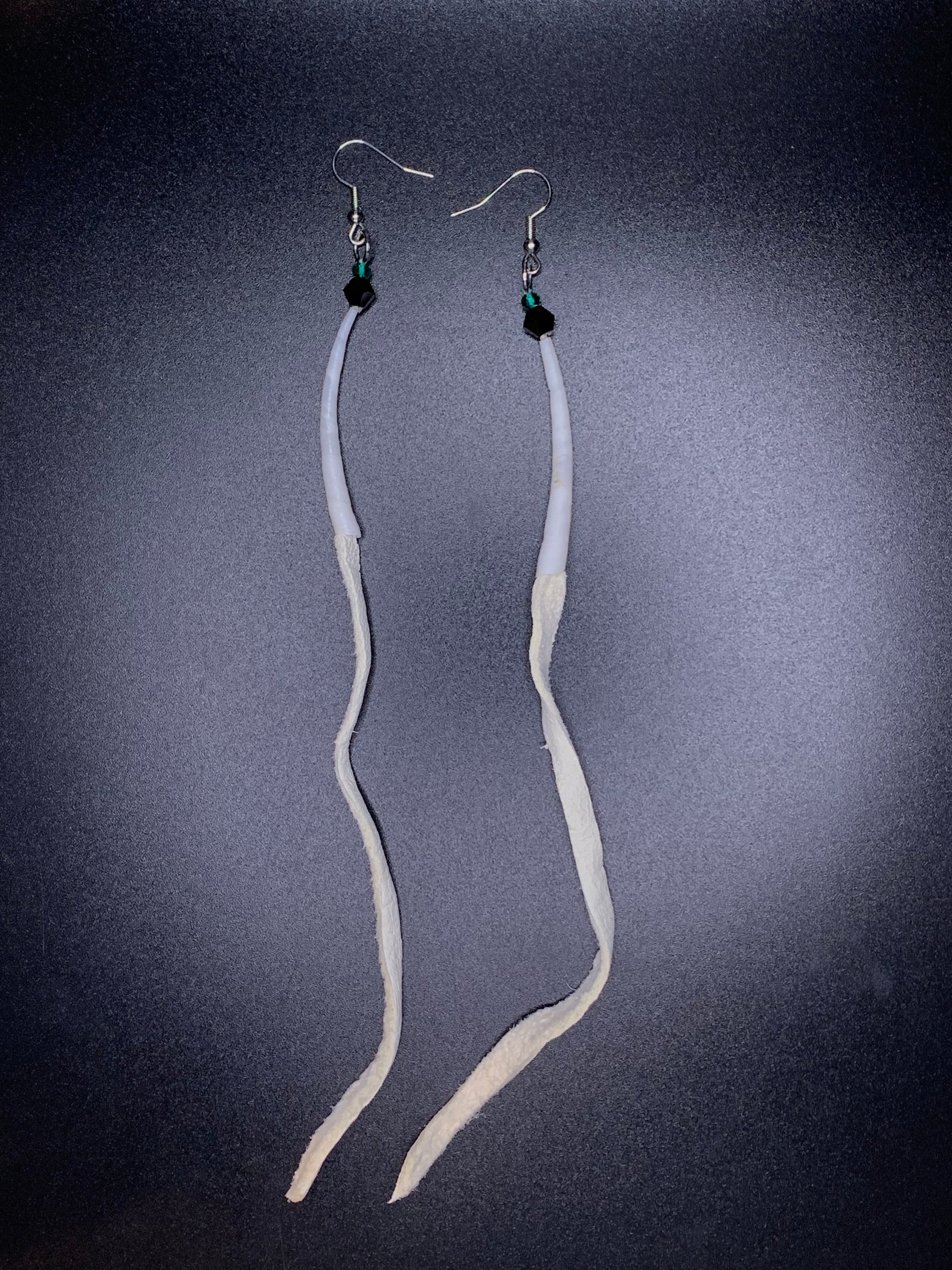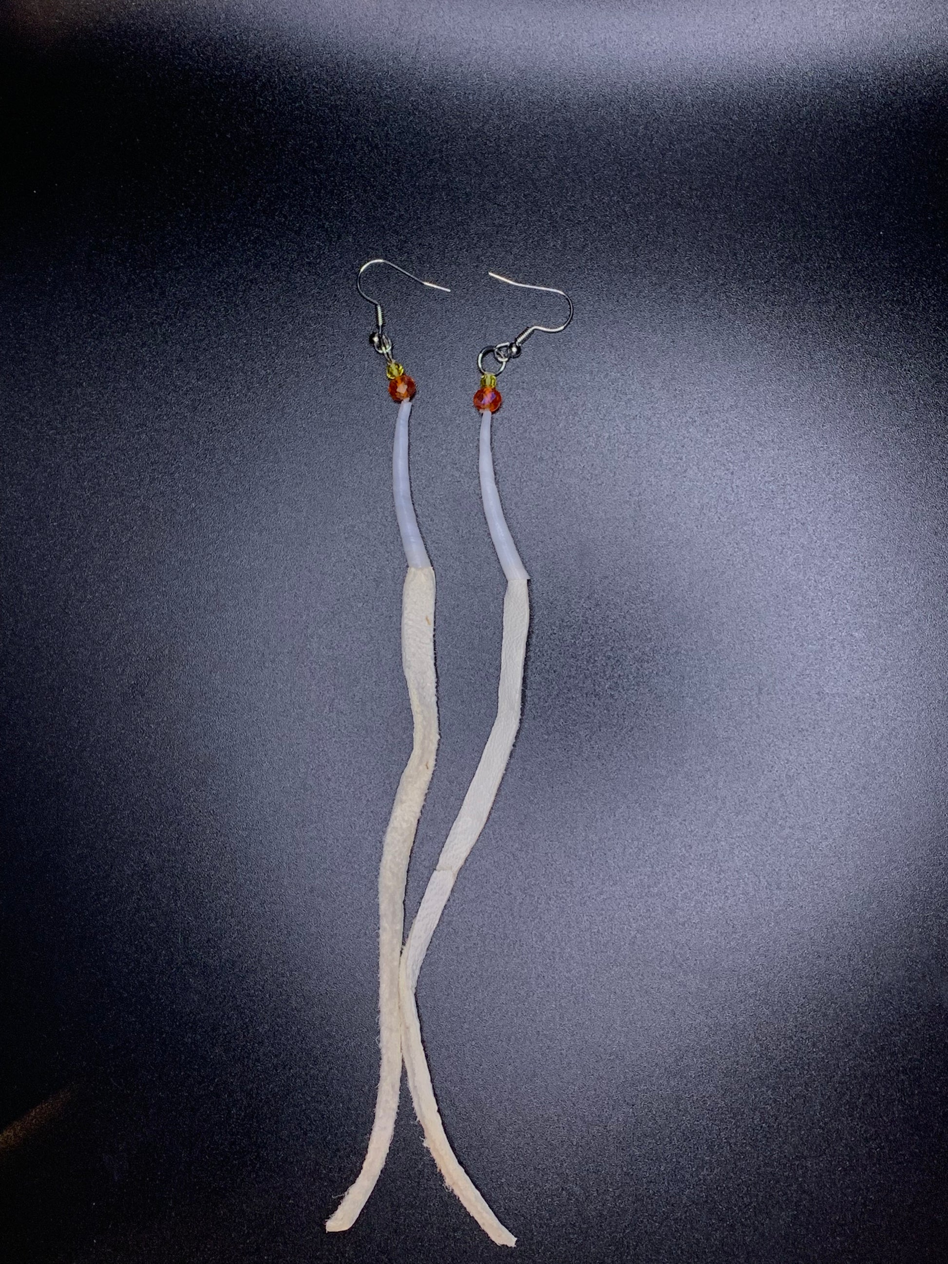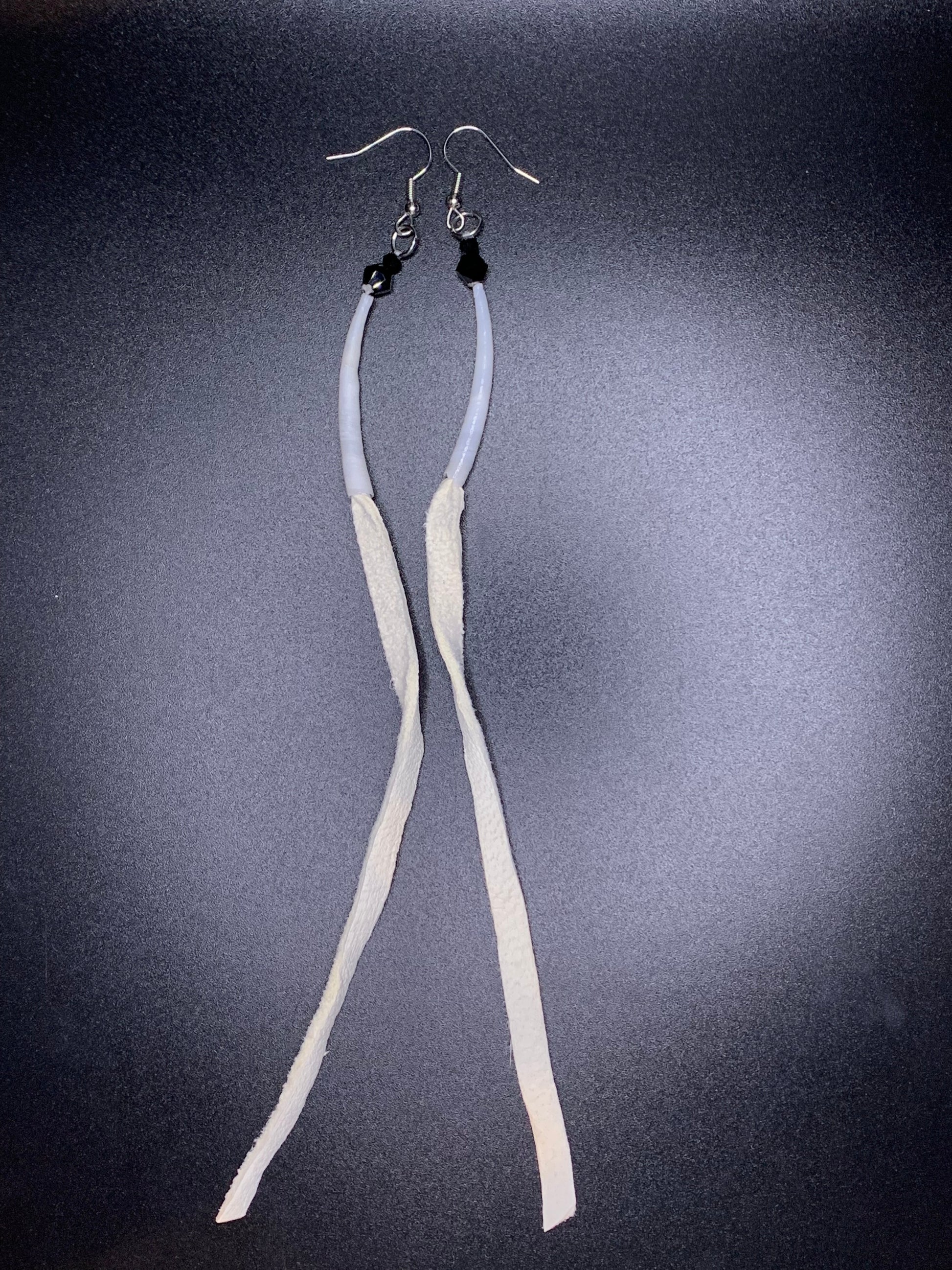 Amaris Makes Good - Dentalium Earrings w Leather Fringe